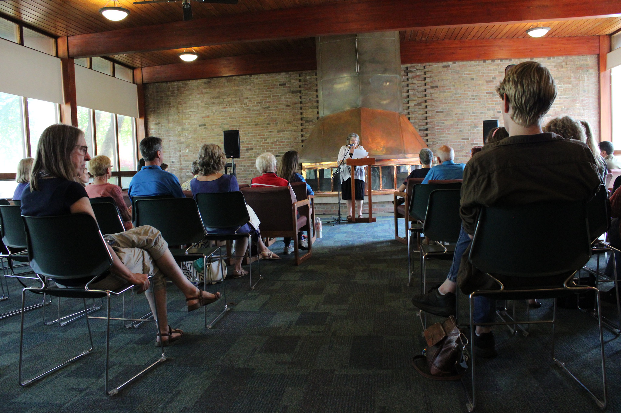 On September 14th, Chatti visited East Lansing’s Copper Chimney Lounge at University United Methodist to meet old and new friends and read from her book. The event, hosted by the Lansing Poetry Club and the RCAH Center for Poetry, was kicked off by Lansing Poetry Club president Ruelaine Stokes. Stokes passed the mic to Anita Skeen, the founding director of the Center for Poetry, who also acted as one of Chatti’s early mentors. Skeen shared recollections of Chatti as an MSU student and a poet who showed exceptional promise even then. Skeen then welcomed Chatti to a room filled with students, community members, poets, and poetry lovers.